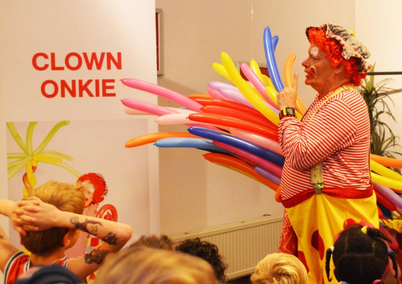 Clown Onkie is niet zomaar een clown die er leuk en gekleurd uitziet...